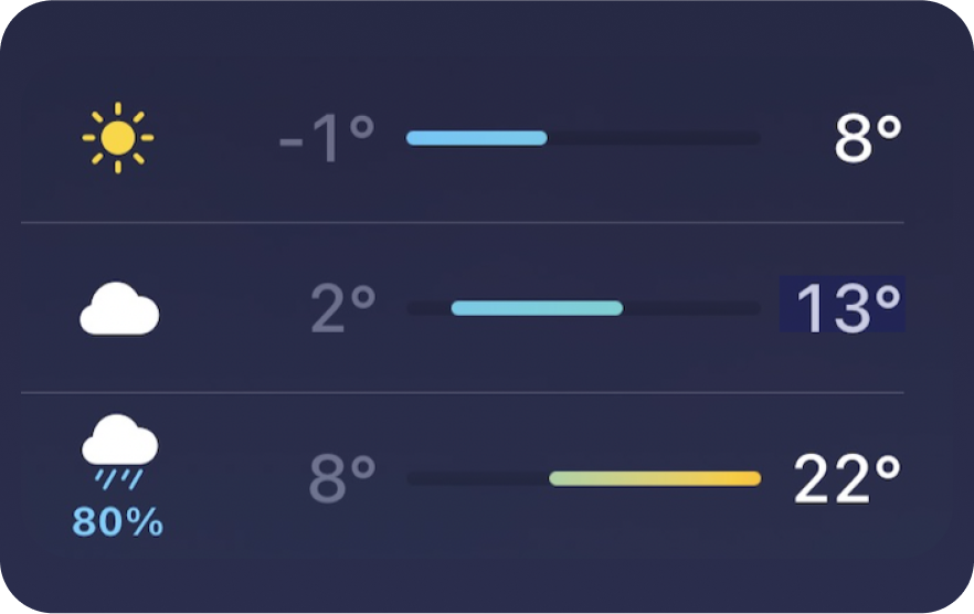 Another variable that proved itself unpredictable was the weather in New York at the time (Spring 2023). The attached screenshot shows the discrepancy from one day to the next, with one day being a sunny -1°C (or 30.2°F) and the next peaking (and raining) at 22°C (or 71.6°F).